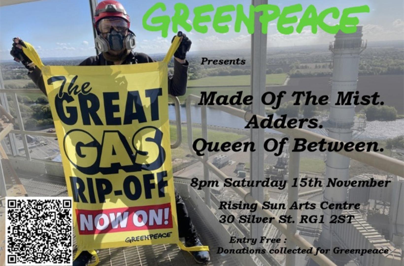 The Rising Sun is host to a fundraiser gig for Greenpeace. Free entry but do please bring some donations for the buckets!