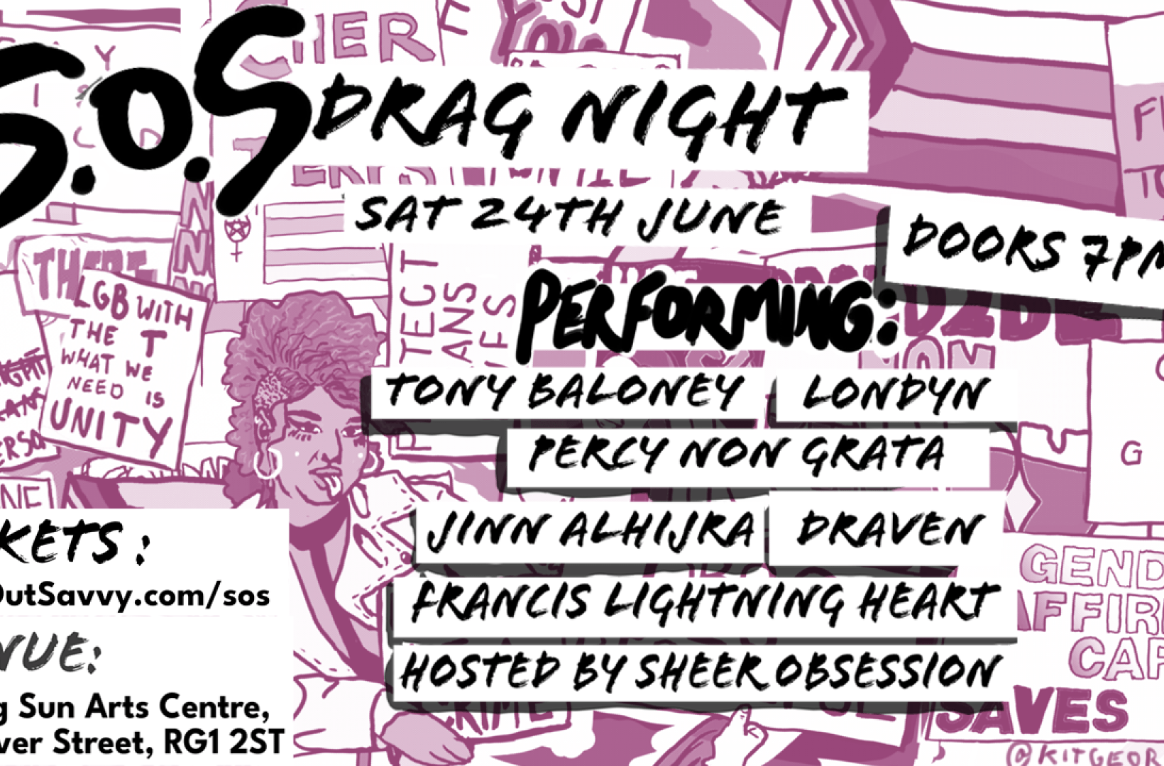 S.O.S is a grassroots DIY queer Reading night of drag, showcasing performances from local acts curated and produced by Sheer Obsession.