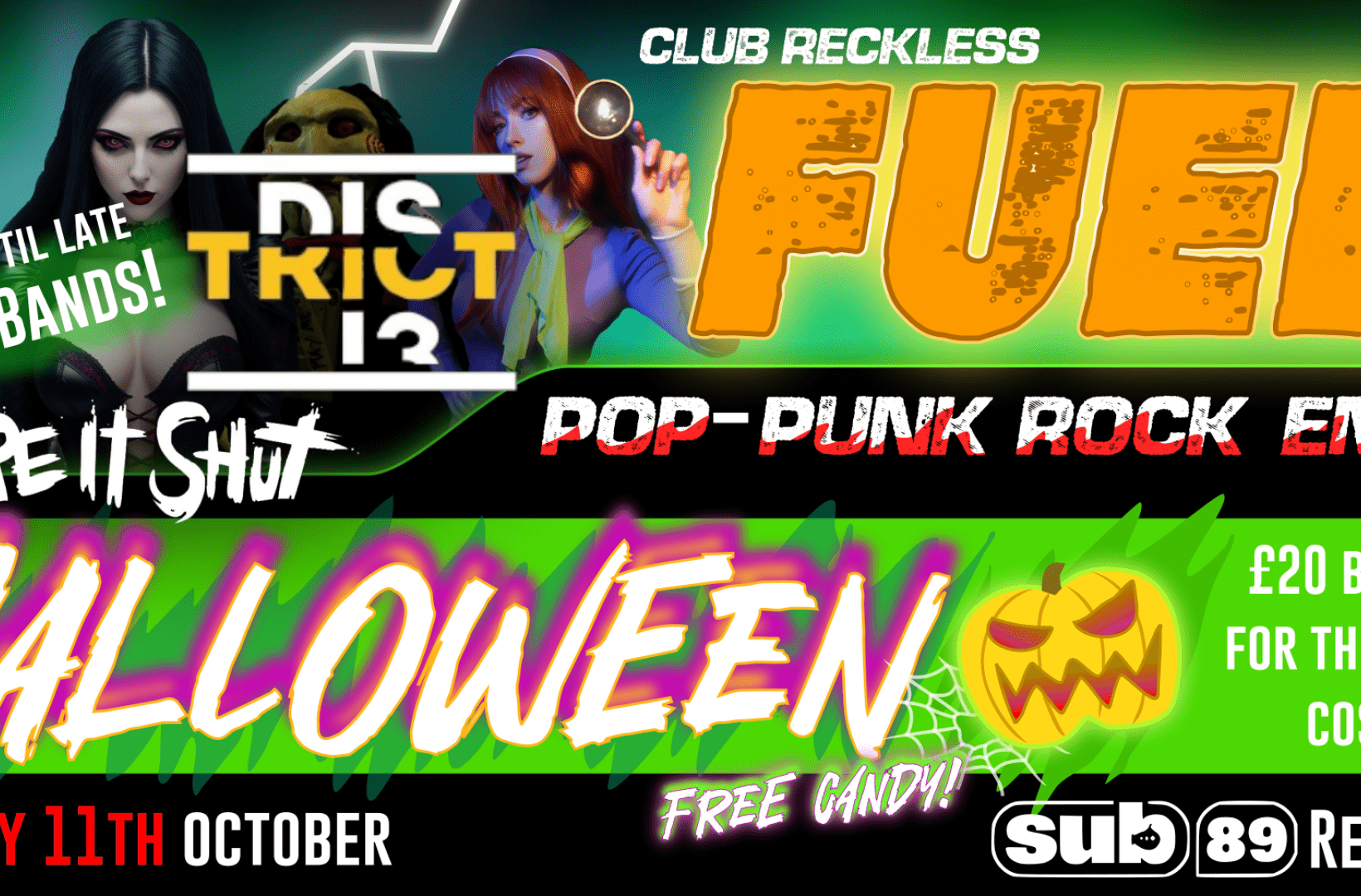 And in this month of Halloween we have the epic District 13 and Tape it Shut to inject some live music into our spooktacular FUEL. There will be lots of free candy, devilish decor and, of course, banging alt-anthems to freak-out all night to so get out of your crypt and creep down this 11th October!