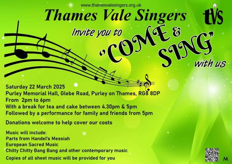 You are invited to come and rehearse some songs with us on Saturday afternoon culminating in a short performance of what we have learned together, plus a few more numbers from the choir, for your family and friends to attend. Tea and cake will be served for participants and audience between the rehearsal and performance.