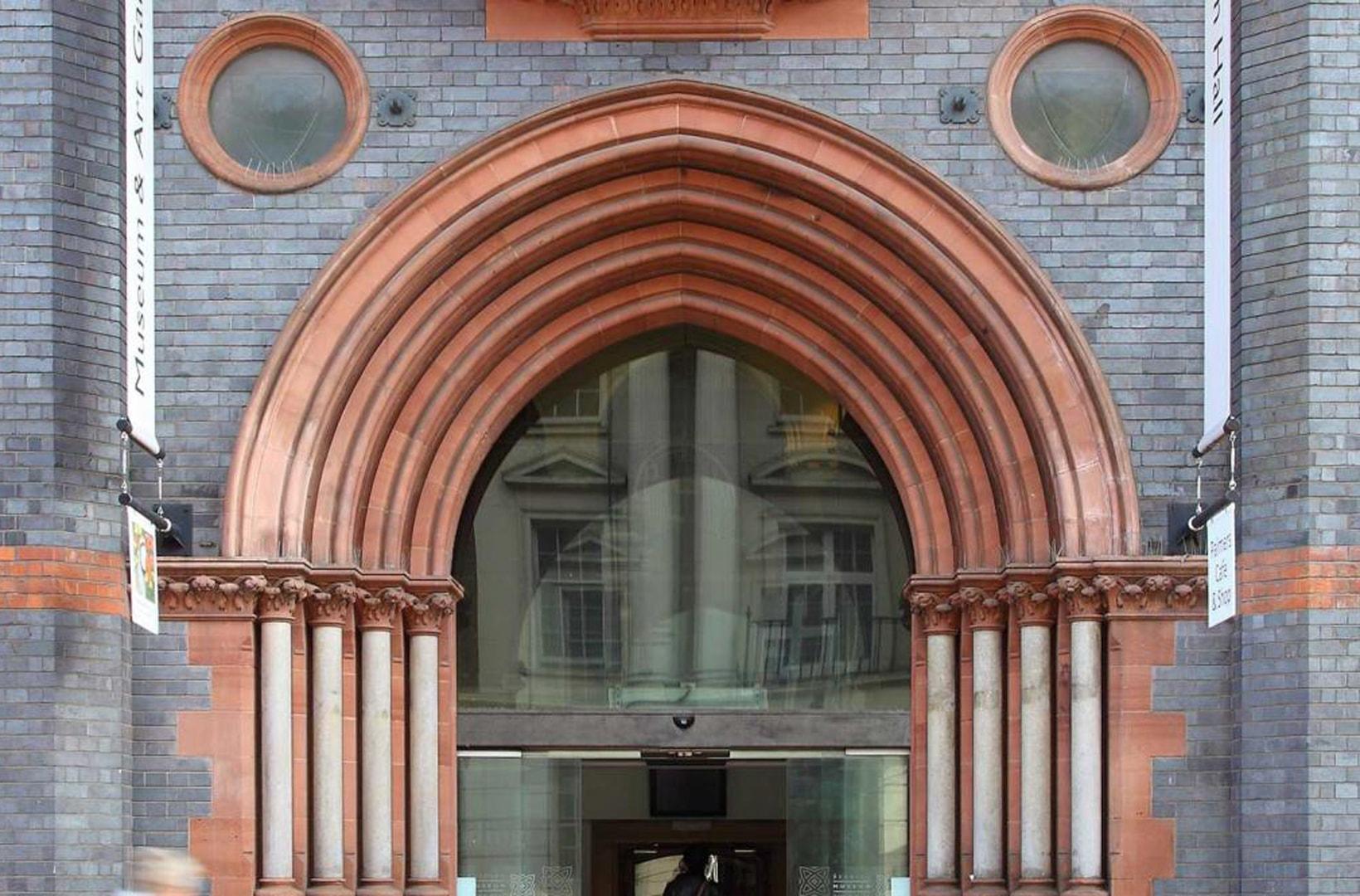 The corner of the 1897 Art Gallery has a terracotta frieze made by Reading brick makers S & E Colliers. The first panel shows ancient British life including an Iron Age blacksmith. The second panel depicts scenes of Roman life. The third panel features Tennyson, Shakespeare, Burns, Milton, Chaucer, Homer and Dante, while the final panel celebrates nineteenth century scientific achievements such as Edison’s telephone.