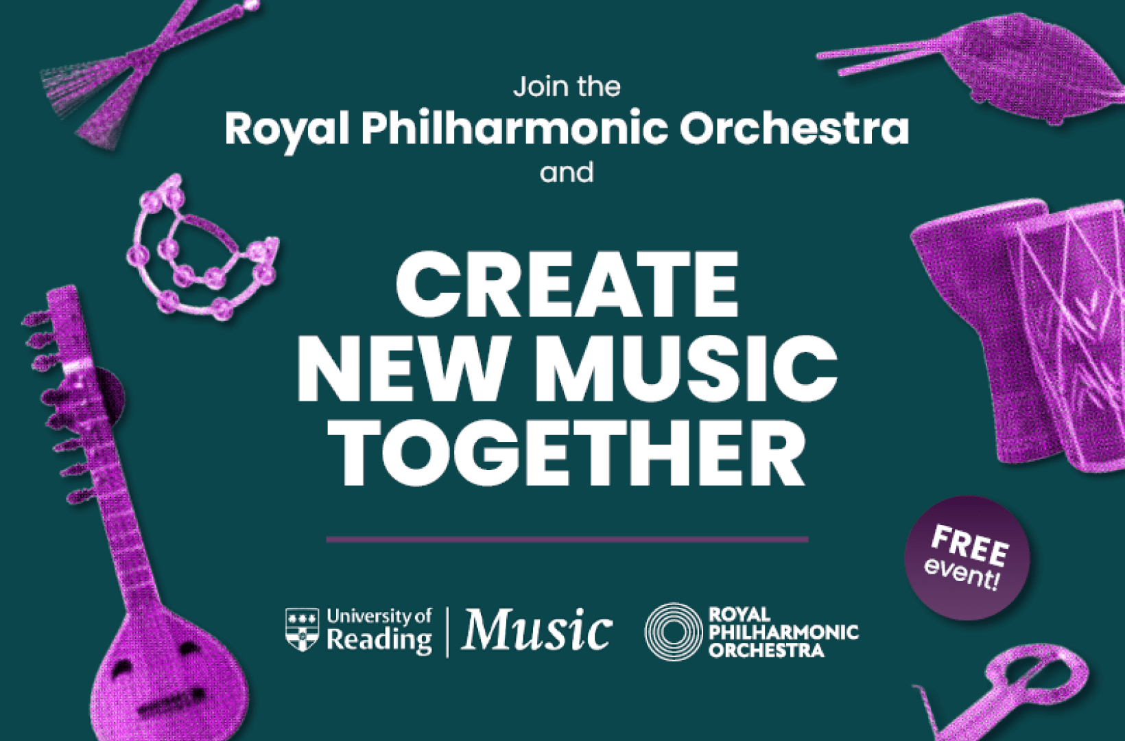 As part of this collaboration, we’re creating a totally free community ‘double event’ opportunity for musically interested people from across Reading. We thought you might be interested and know people who would like to be involved?!