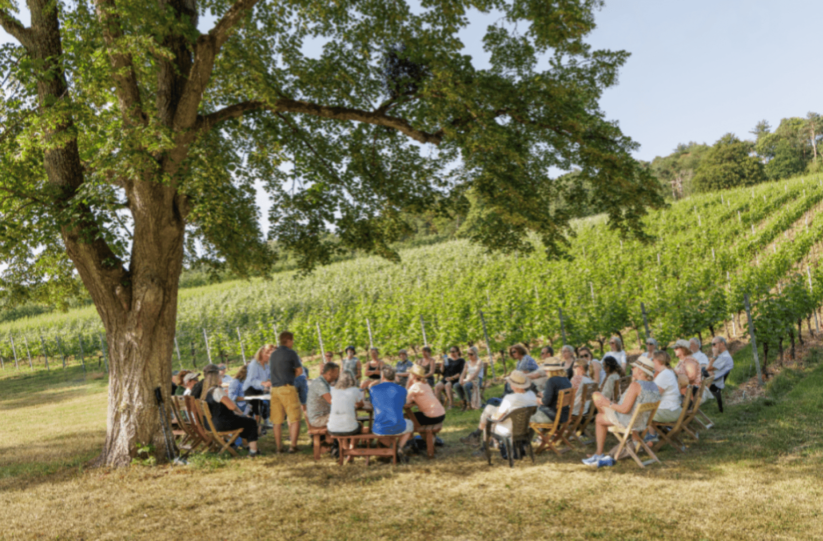 A guided countryside walk starting at Fairmile Vineyard, blending exceptional English wines, expert led tastings, artisan cheese pairings and a memorable finish at Oaken Grove Vineyard.