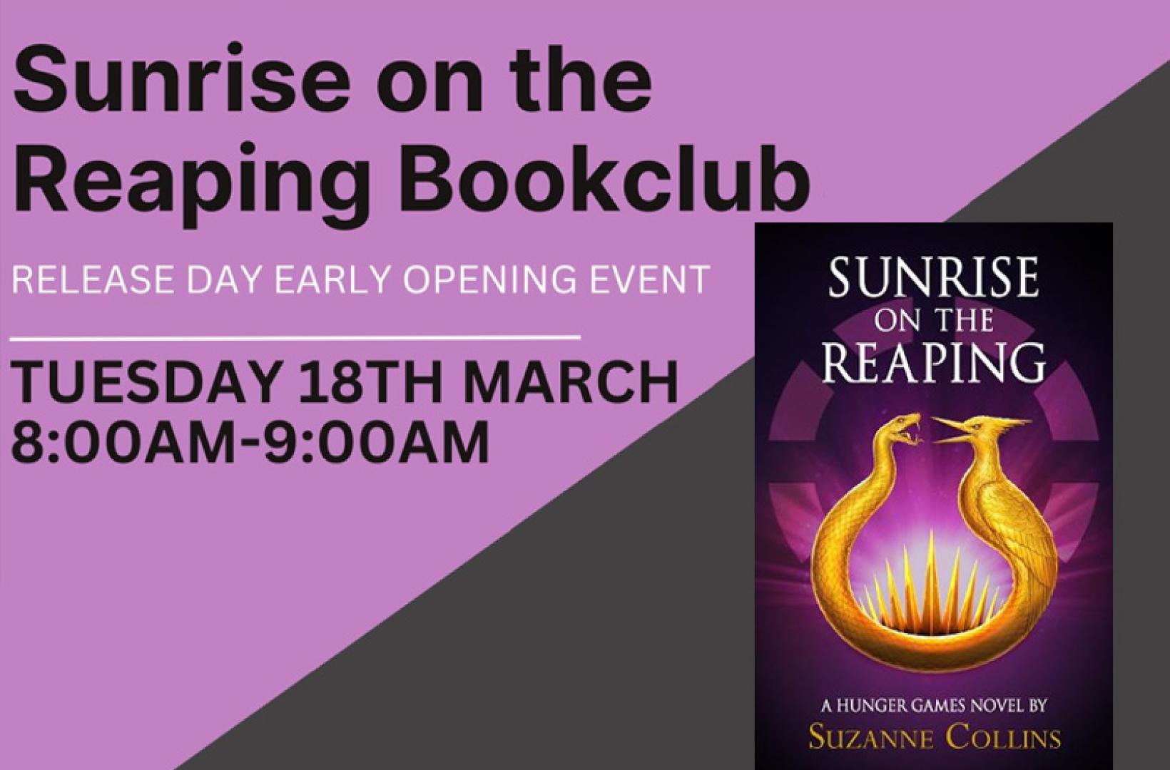 Join us at 8am, an hour before opening, and be one of the first to purchase Suzanne Collins' newest book in The Hunger Games series, Sunrise on the Reaping!