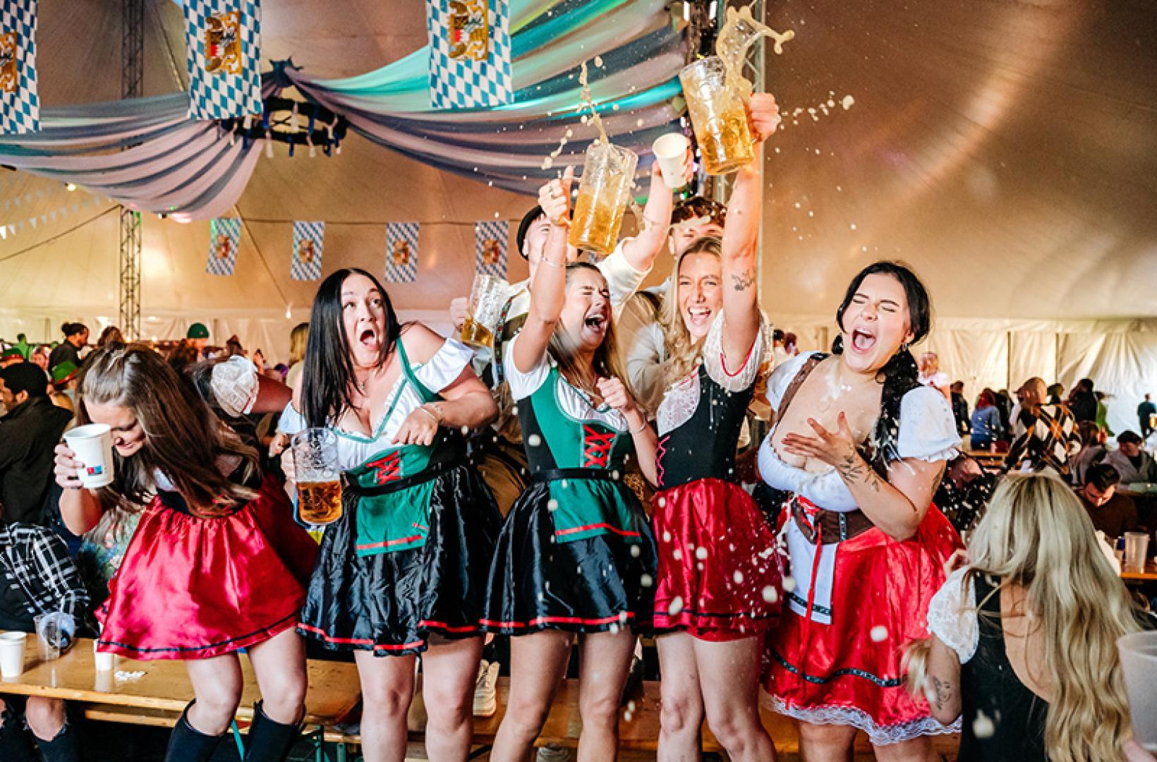 Our yodelling host, Eva Von Schnippisch, along with DJs and entertainers, will keep the excitement going from start to finish. Fancy dress is encouraged, making the experience even more festive under our massive touring bier hall marquee. This isn’t just another night at the pub—it’s the biggest Oktoberfest party in the country, delivering an unforgettable Bavarian experience like no other!